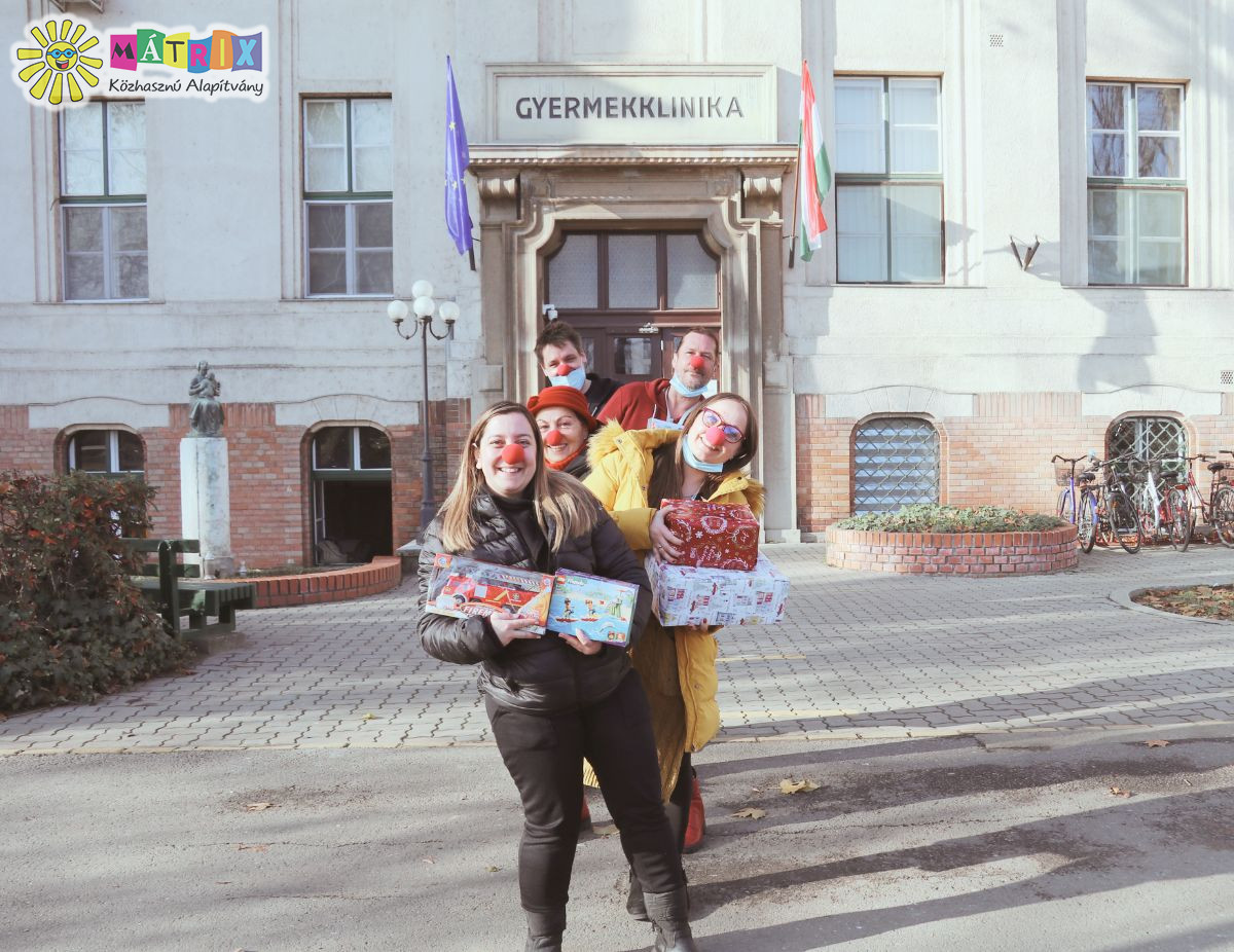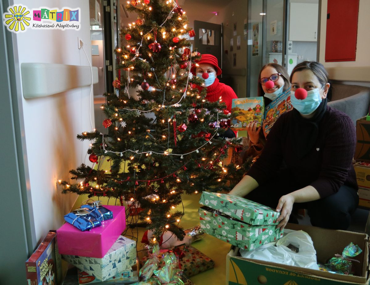 A Mátrix Közhasznú Alapítvány bohócdoktor csapata az ünnepek előtt ismét a gyermekkórházakban és gyermekosztályokon teljesített szolgálatot. A bohócdoktorok a nagybeteg és gyógyuló gyermekeket nemcsak mosollyal és figyelemmel, hanem ajándékokkal is meglepték, erősítve a gyógyuláshoz szükséges lelki támogatást.